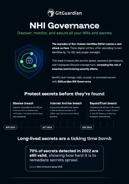 GitGuardian est le leader de la sécurité des identités machines. En s'appuyant sur l'inventaire exhaustif des secrets d'une organisation, la priorisation et la remédiation des fuites à grande échelle, GitGuardian offre à ses clients la protection de leurs identités machines et leur permet de maîtriser leur exposition aux attaques cyber. Largement adoptées par les communautés de développeurs, les solutions de GitGuardian sont utilisées par plus de 600 000 développeurs et des entreprises de premier plan, telles que Snowflake, Orange, Euronext, Deutsche Telekom, Desjardins, ING, BASF, and Bouygues Telecom.